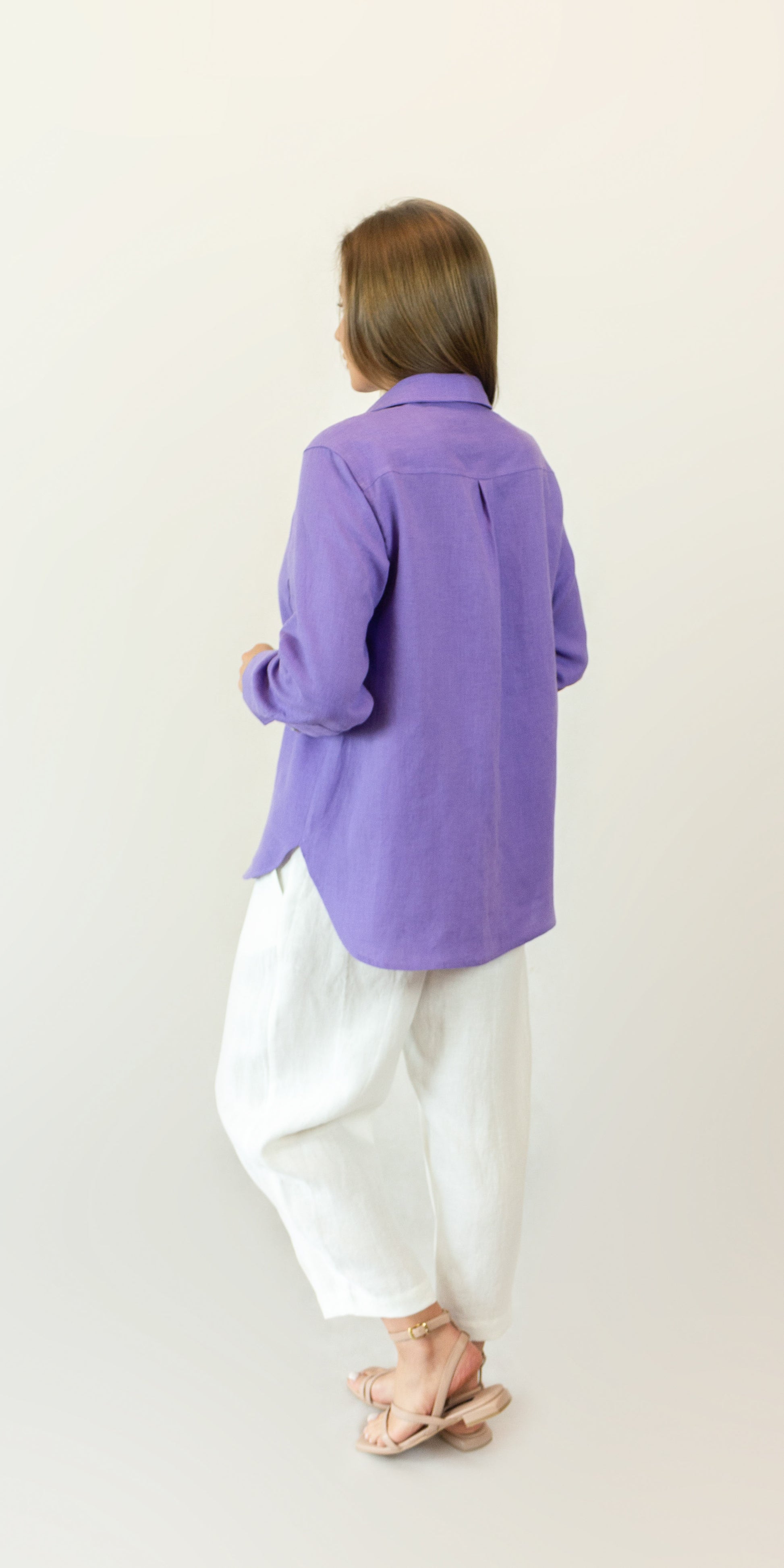 Klasikinio stiliaus lininiai marškiniai ilgomis rankovėmis. Šiek tiek prailgint nugara. Platūs rankogaliai. Viena uždėtinė kišenė. Sagutes ties rankogaliais ir priekyje. Norėdami oversize modelio, rinkitės vienu dydžiu didesnį dydį nei įprastai.
