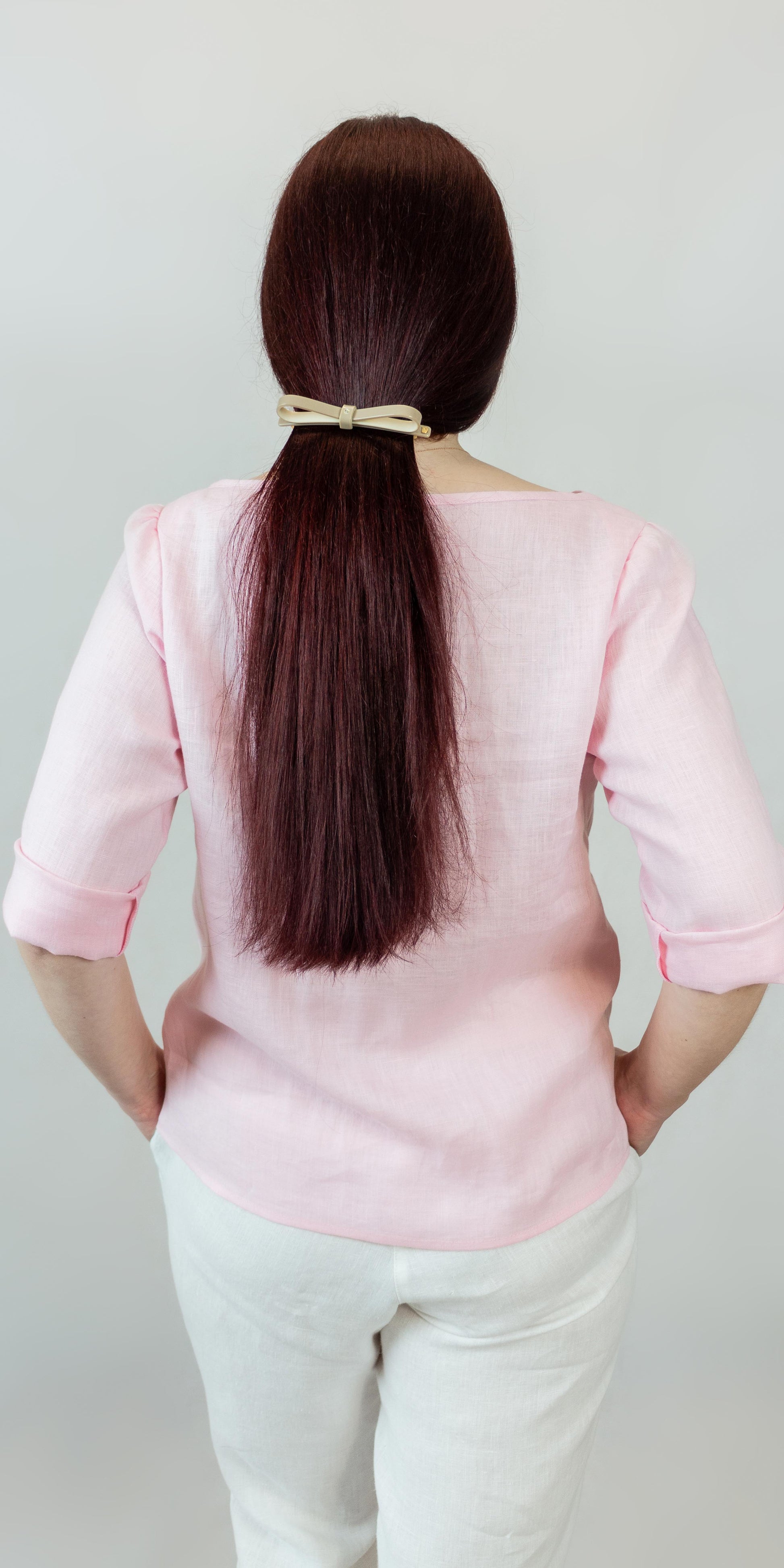 Lininė pusiau prigludusio silueto palaidinė. Rankovių ilgis 3/4, plonesnio audinio.
